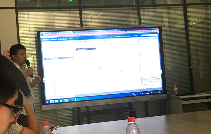本次会议介绍了青岛农业大学信息化建设成果,并就VMware SDDC助力数据中心现代化转型组织了教育行业技术研讨会。在VMware公司工程师和青岛农业大学信息中心的老师带领下参观了青岛农业大学信息中心,包括各类实验室和数据中心机房,以及桌面虚拟化,网络虚拟化和云服务平台等。