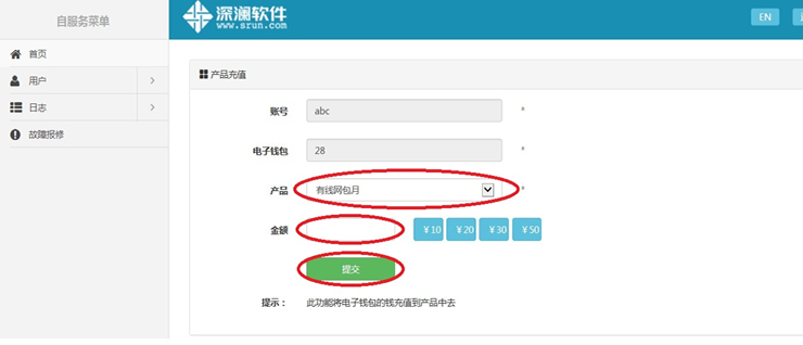 与原系统不同之处为自助缴费的金额默认充值到上网账号电子钱包中,需要用户登录自服务系统后选择“产品充值”,选择当月/次月要使用的产品套餐,选择/输入充值金额,点击“提交”完成自助充值后方可正常使用网络。“产品充值”功能将于2016年10月30日开始开放。