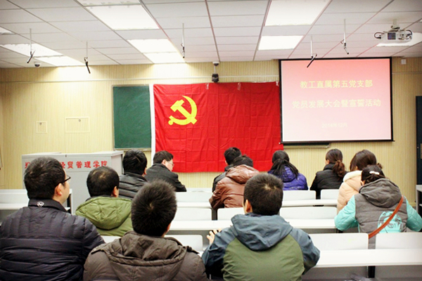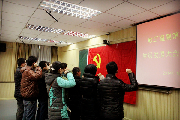 12月25日下午,教工第五党支部召开全体党员大会讨论新党员发展问题,并组织入党誓词宣誓活动。