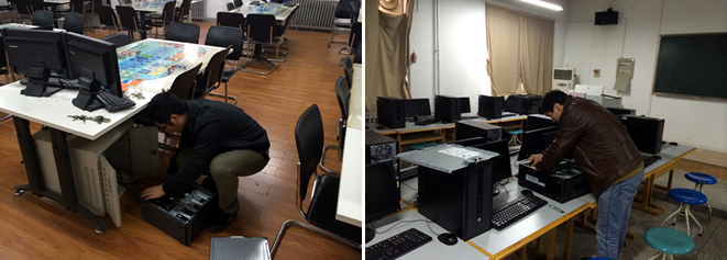 为了不影响日常教学的正常进行,现代教育技术中心各位同仁充分利用午休和课余时间,对每台设备认真排查、及时检修,并对设备的故障和维修情况登记记录。经过近两周时间的努力,已完成了辖区内所有设备的检修及维护工作。