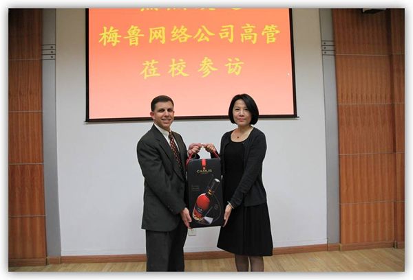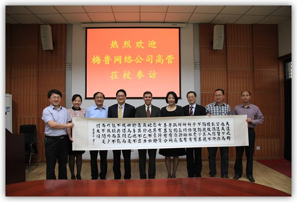 5月16日上午,梅鲁网络公司高教业务集团高级总监理查德・耐得韦奇 (Richard Nedwich)、市场部产品总监戴尼斯・黄 (Dennis Huang)、大中华区总经理司马聪一行三人莅临我院考察访问。张洁副院长、院办主任朱永恒、信工系主任李学桥、现教中心主任毛振江等人热情接待并在第二会议室与来宾进行了座谈交流。