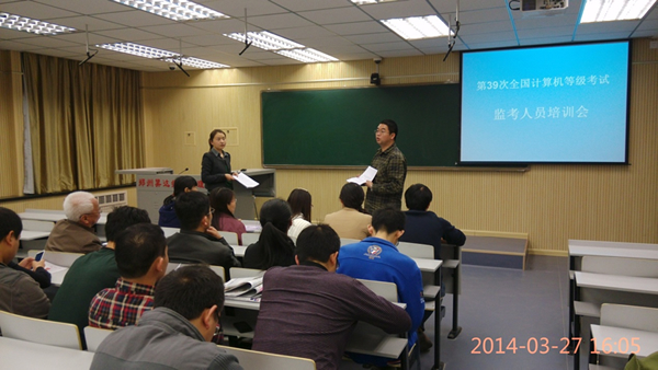 第39次全国计算机等级考试将于3月29日开始进行,为了确保考试系统正常运行,给考生提供一个高效、安全的考试环境,3月27日下午,现教中心和教务处共同特举办了考务工作培训会。参与本次监考的所有人员全部参加。
