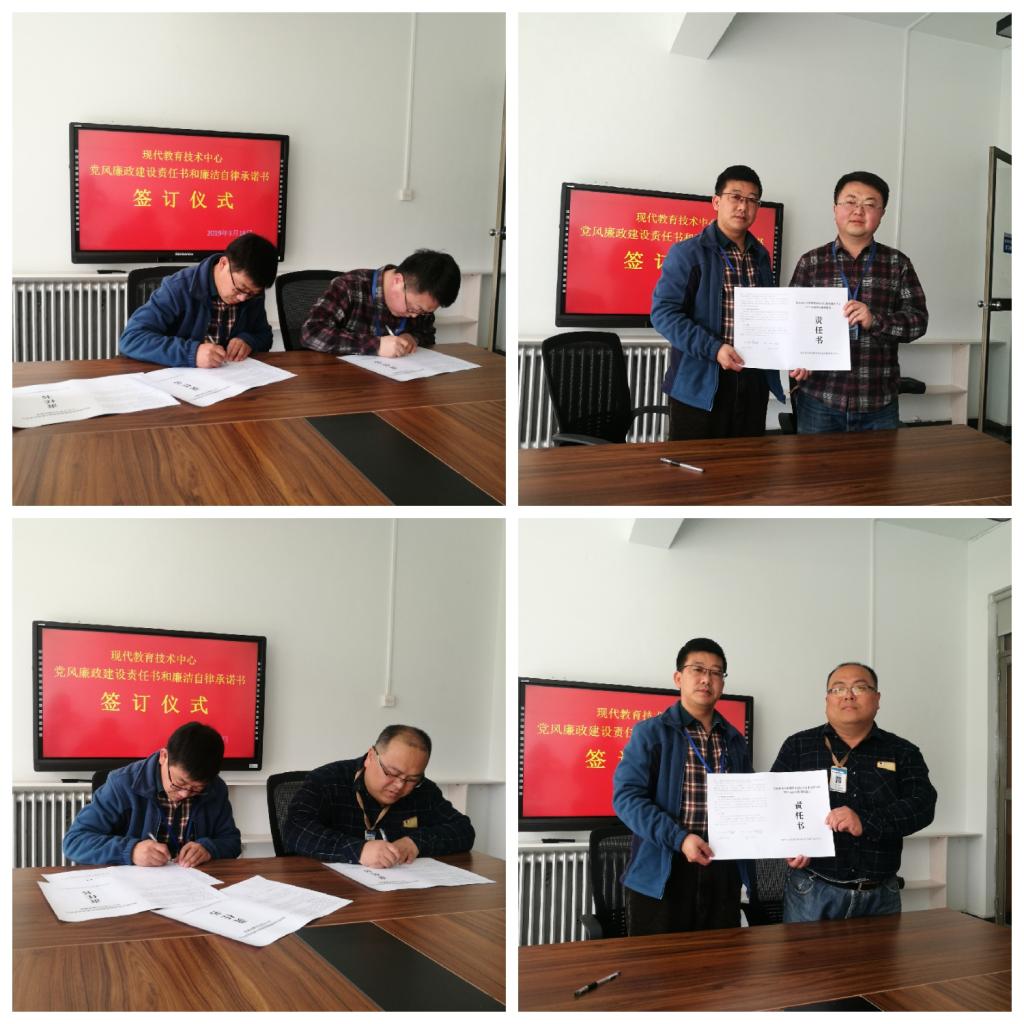 3月18日,现代教育技术中心在资讯楼会议室召开党风廉政建设学习教育大会,举行党风廉政建设与廉洁自律承诺书签订仪式,现教中心主任李保华主持本次活动。