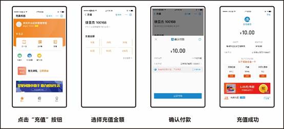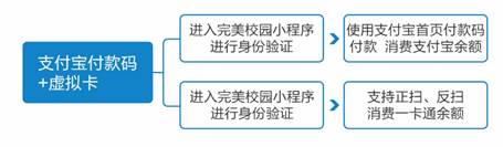 注:支付宝充值后,虚拟卡即时到账,实体卡需到食堂消费机器(POS)上刷卡领款。