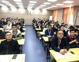 在资讯楼307教室,通过一个个触目惊心的案例,结合高校特点,王炎伟教员详细讲解了火灾类型,逃生方法,并通过视频播放演示防毒面具、灭火毯、灭火器等消防器材的使用方法。