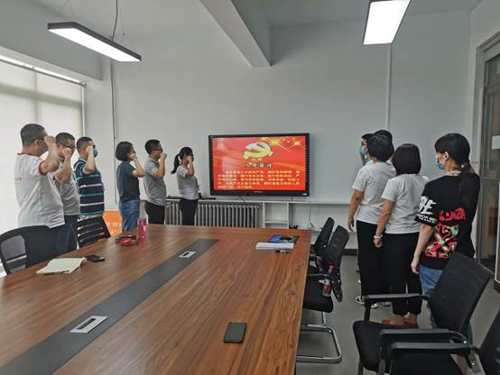 首先,全体党员面向党旗,举起右拳,庄严宣誓。铮铮的誓言,神圣而豪迈,震撼着每一位党员的心。通过重温入党誓词,更加坚定了党员同志的理想信念,牢记使命、砥砺前行。