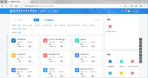 目前已完成学校邮箱申请、学生医保入保信息确认、数据使用审批等十余个服务流程的建设测试,根据试运行情况陆续开放。当前网上办事大厅处于需求征集阶段,后续会根据师生需求增加相关的业务流程。如各单位有需要在办事大厅流转业务流程的需求,请联系信息化办公室。