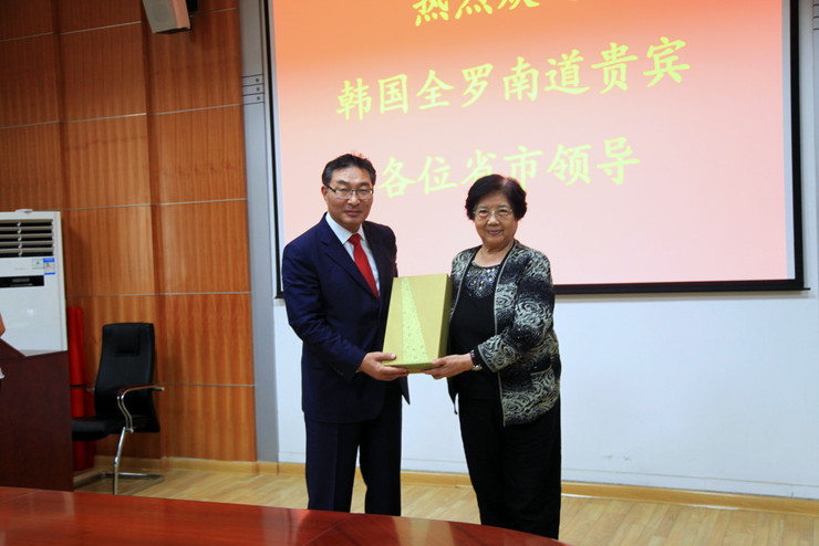 出席座谈会的我院领导有董事长王淑芳女士,院长郭爱先教授,执行董事王新奇,教务长吴益民,总务长张其武,院长办公室主任朱永恒,发展规划处与校地合作处处长沈定军,公关室主任赵万友。会议由外事办主任顿雁峰主持,韩语翻译为我院2013级国本1班金敬华同学。