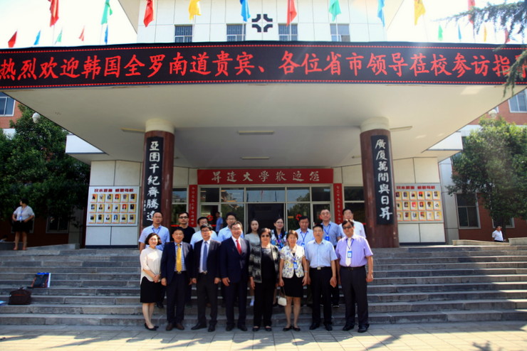 全罗南道政务副知事禹基鐘讲话。他对升达学院的热情欢迎和接待表示感谢,对创办人在教育界的贡献表达崇高的敬意。接着,他提出此行的两个目的:第一是交流。他说,全罗南道和河南在文化、旅游产业等方面有许多相似之处。升达学院身处郑州航空港经济综合实验区和新郑市,地位凸显,交通便利,和全罗南道的交流更具合作可行性。第二、介绍全罗南道经济文化,海岛旅游状况。欢迎朋友前去观光旅游。