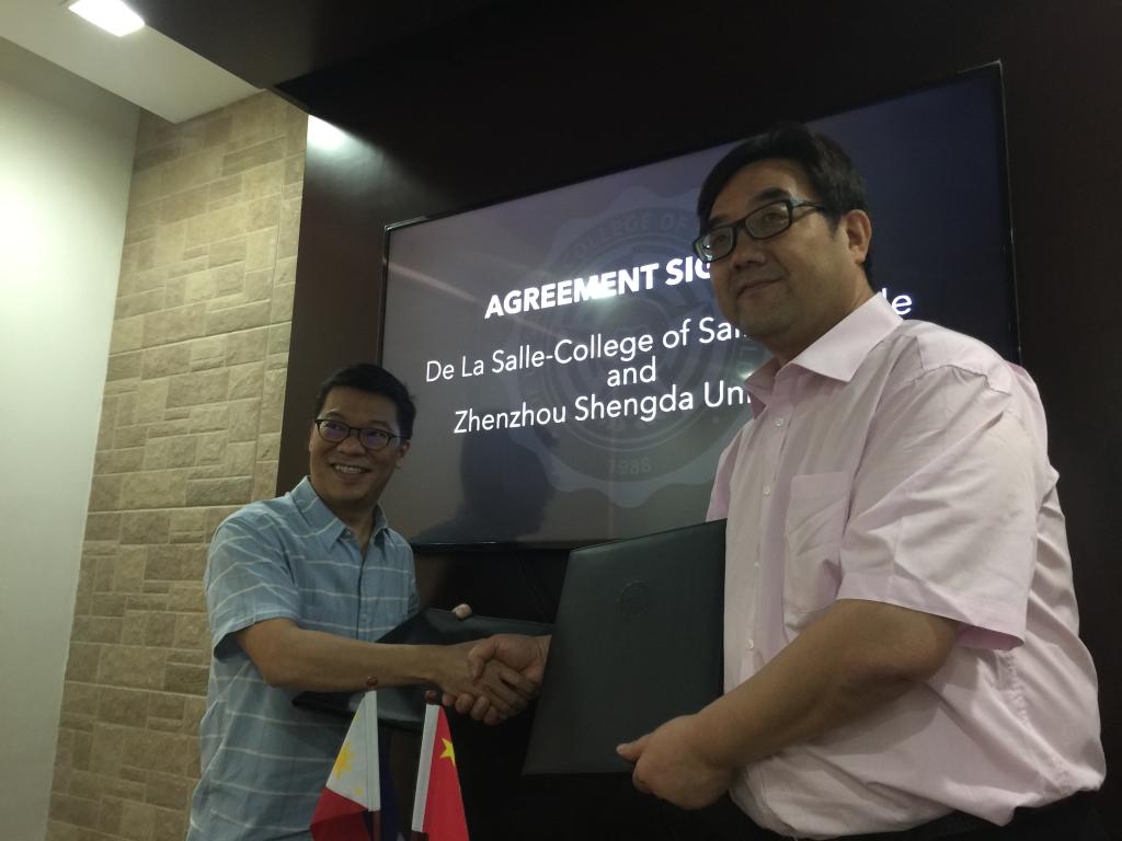 在德拉萨-圣百尼德学院访问期间,该校校长Robert Tang主持并全程参加了接待活动,双方就办学理念、办学模式、办学经验等问题进行了交流,并签订了合作备忘录。