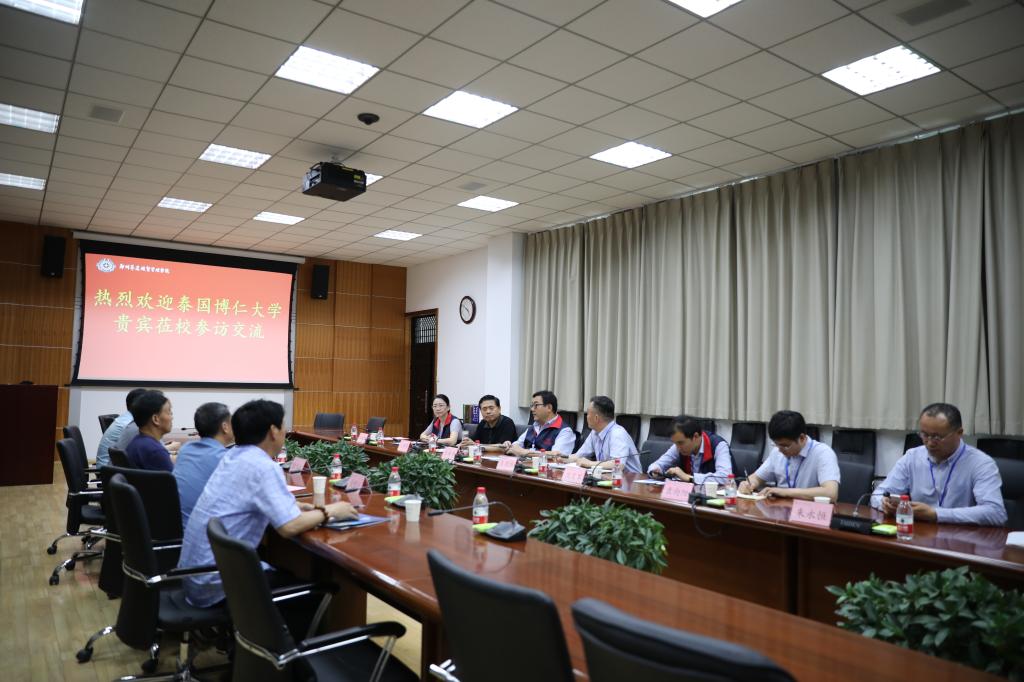 座谈会上,王新奇董事首先对来访客人表示热烈欢迎,并向客人介绍了我校的基本情况,随后,他表示今年1月份参访了泰国博仁大学,对学校的校园环境及办学特色留下了深刻印象。钱耀兴主任对我校的热情接待表示感谢,并表示博仁大学希望与我校展开一系列有关合作。随后,双方就硕士项目、教师研修及其他合作交流形式等方面问题进行了深入交流。