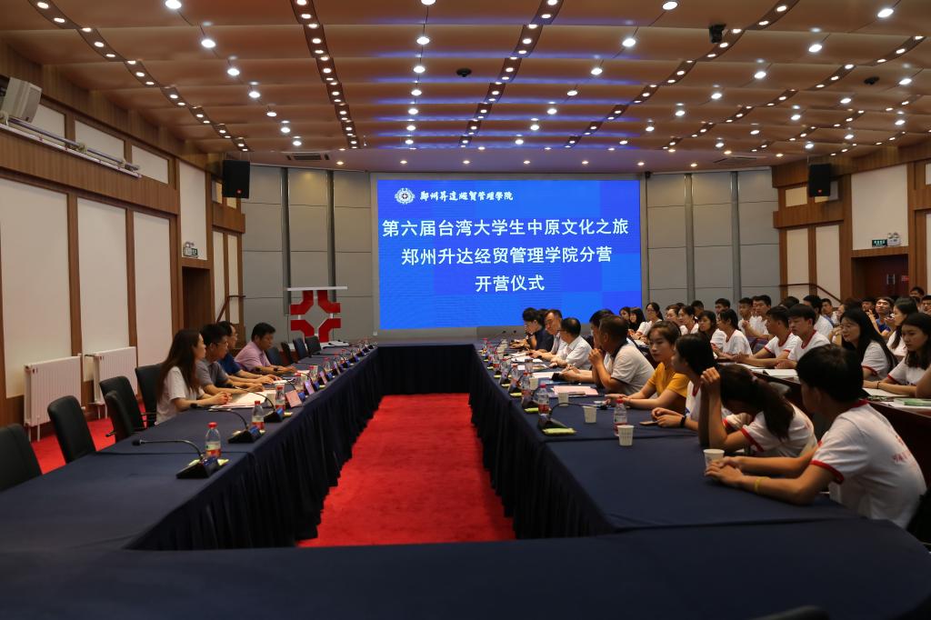 7月5日上午,我校组织的“第六届台湾大学生中原文化之旅升达分营”开营仪式在行政楼国际会议厅举行。郑州市人民政府台湾事务办公室副主任唐国庆、文化宣传处处长邵殿忠、文化宣传处吴佳、新郑教育园区管委会副主任张顺安和我校执行董事王新奇博士、常务副校长崔慕岳教授、党委书记戎庭银出席仪式,学务处、宣传部、港澳台事务办公室等部门负责同志与来自台湾台东大学、义守大学、南华大学的7名同学生和来自我校的100名学生代表参加仪式。仪式由我校港澳台办公室主任顿雁峰主持。