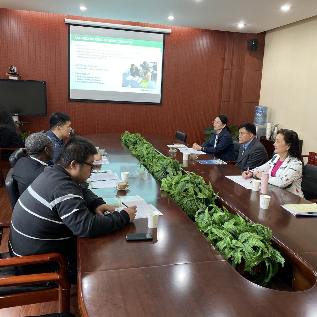 座谈会上,副校长吴益民教授首先代表学校向来访客人介绍了我校的专业设置、师资力量以及近年来国际交流情况,随后,他邀请嘉宾一同观看我校英文宣传片。美国佐治亚格威内特学院国际处长Funwi Ayuninijam对我校的热情接待表示感谢。他说,很高兴代表佐治亚格威内特学院来到升达,升达的教学硬件设施及美丽的校园给他留下了非常深刻的印象,很希望与升达展开一系列交流合作。接着,他就其学校的专业设置、入学要求等方面做了详细介绍。