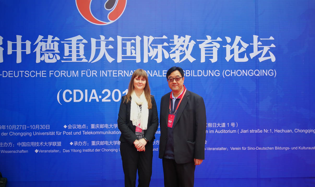 2019年10月28日上午,为促进中德高校的交流,汲取德国应用技术大学建设经验,加深中德两国高校在应用型人才培养领域的合作,听取企业界对应用型人才培养的意见和建议,由中国应用技术大学联盟主办,重庆邮电大学移通学院承办的第三届中德重庆国际教育论坛在移通学院缤果大剧院举行。400余名中德政府机构、中德应用型人才或德语人才培养高等学校、企业公司、相关社团、拟开设德语课程中学的代表以及中德应用型人才培养研究专家学者等国内外嘉宾共同出席了此次论坛。我校执行董事王新奇博士受邀参会,发展规划处处长沈定军、国际交流处处长顿雁峰陪同参会。