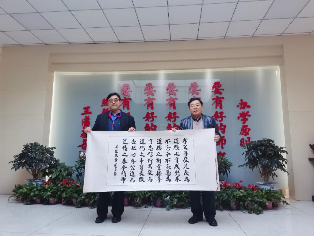12月3日,河南省委宣传部原副部长刘富民、河南清风书画院院长王誉文、中国传统文化书画院副院长蔺振坤、国际武术学院院长韩风河、河南兰花雨牌设计有限公司总经理陈金燕一行5人访问我校。我校执行董事王新奇接待了到访贵宾。