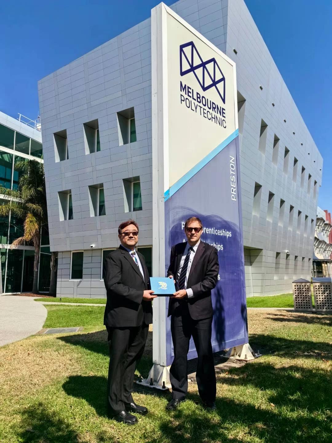 此前,墨尔本理工学院副校长Timothy Gilbert曾来访我校。通过本次出访和密切对接,不但加强了与墨尔本理工学院的联系,更有力促进了教师交流互访及科研等方面的合作,在中外合作办学项目等方面深入磋商,取得阶段性进展,为推动学校国际化建设再添助力。