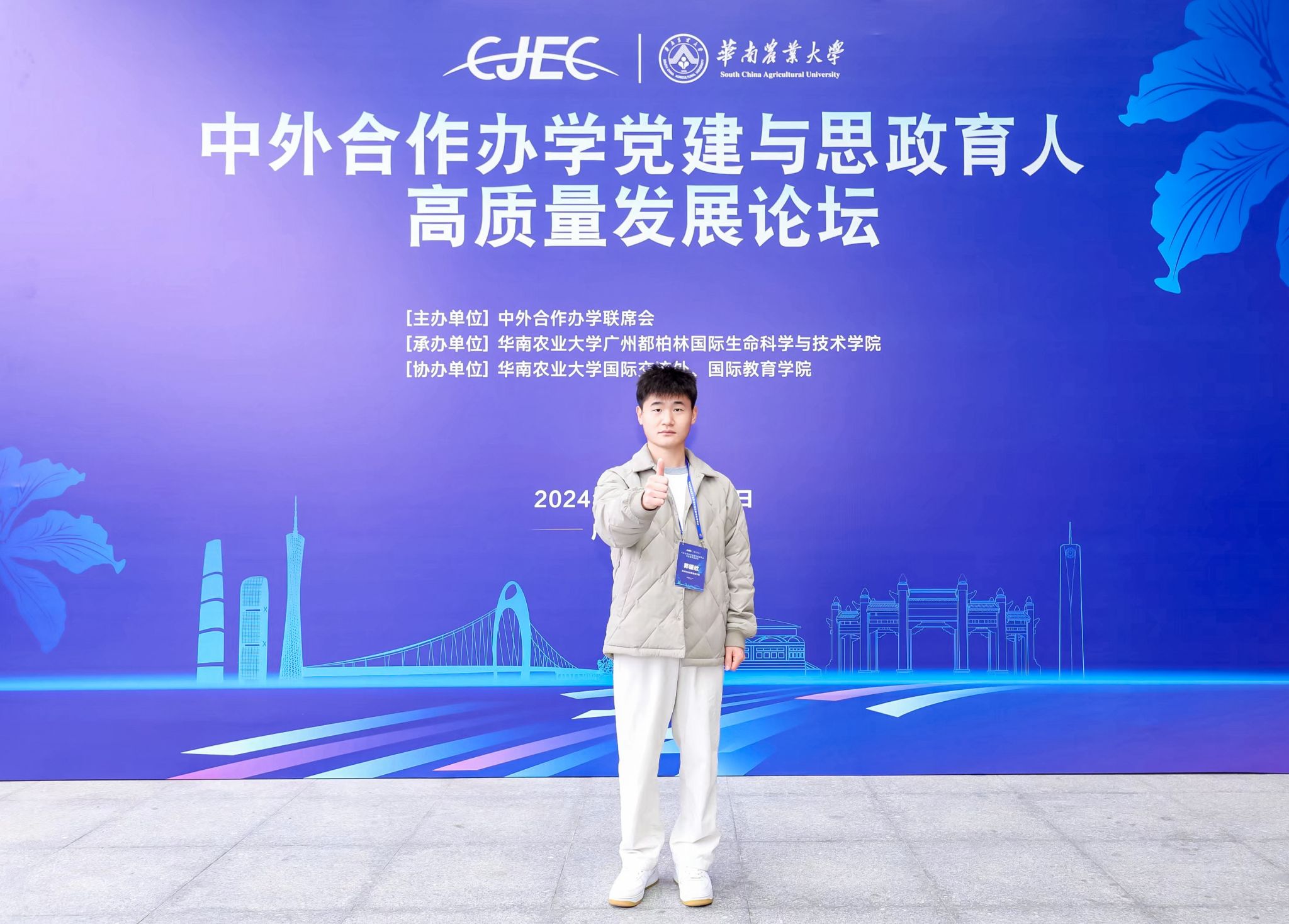 2024年12月12日至14日,由中外合作办学联席会主办、华南农业大学都柏林国际生命科学与技术学院承办的中外合作办学党建与思政育人高质量发展论坛在广州召开,我校受邀参加了会议。会议围绕中外合作办学党建与思政育人主题,探讨了全球化背景下中外合作办学党建与思政育人的新思路和新举措。中国教育国际交流协会中外合作办学分会理事长方军,华南农业大学校长薛红卫,沈阳大学校长、中外合作办学联席会主席赵彦志,广东省教育厅交流合作处处长李金俊等到会致辞。来自全国百余所高校共200余位中外合作办学相关人员参会。