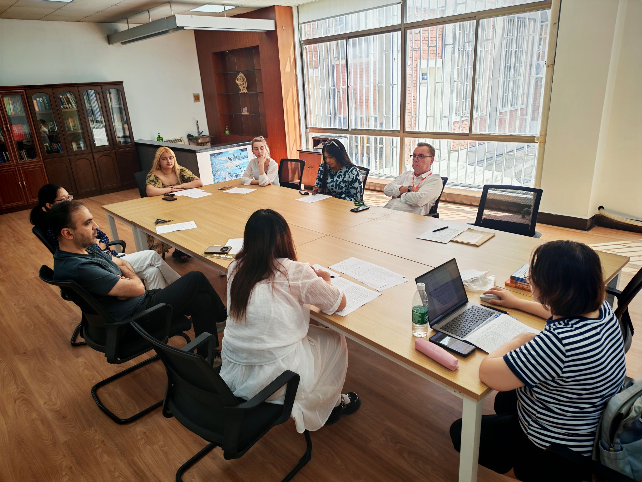 在交流答疑环节,外教们积极提问,主要就课程安排、教学资源使用、生活服务等方面与国际处和外语学院督导进行了深入沟通。相关负责人员一一作出细致解答,现场气氛融洽。