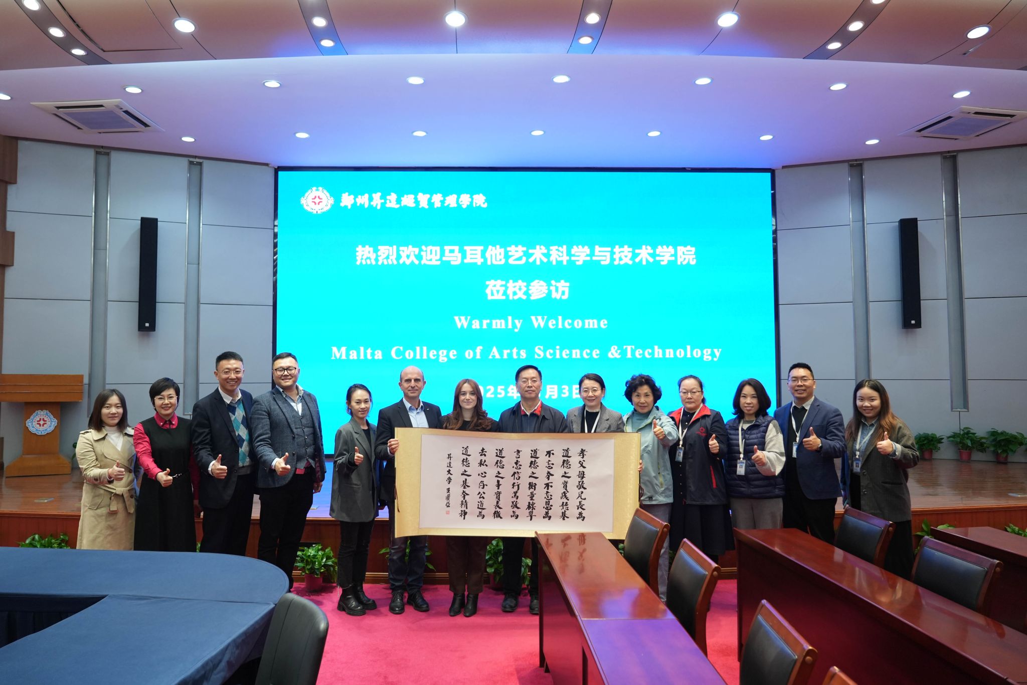 11月3日,马耳他艺术科学与技术学院国际合作业务发展主管玛克辛·米卡莱夫一行到访我校,双方在国际会议厅举办座谈会,我校董事长王新奇、副校长张金安出席见面会,国际交流处、商学院、艺术学院、信工学院参加会议。会议由国际交流处处长顿雁峰主持。