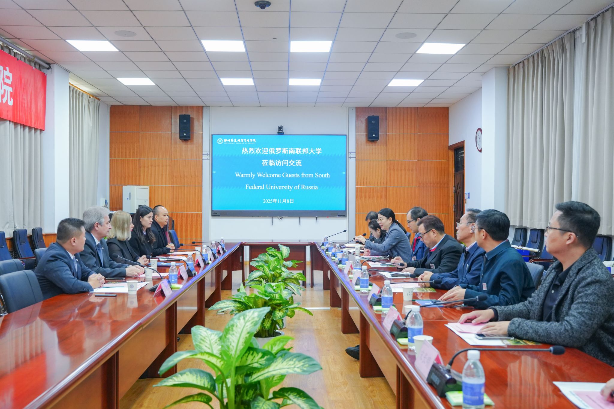 卡里亚金院长对我校的热情接待表示感谢,他表示通过参观校园,对我校的教学设施以及校园环境印象深刻。之后介绍了俄罗斯南联邦大学的院系设置、学科建设和国际合作交流等情况,同时表示希望发挥两校重点学科优势,挖掘双方合作潜力,开展全方位、深层次的两校合作。随后,双方就共建实验室、师生交流项目等合作事宜进行探讨。