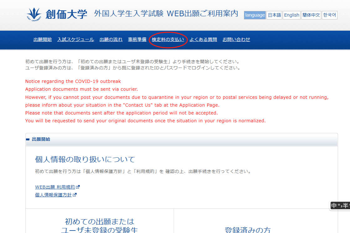 线上报名和支付链接 https://soka.campus-p.jp/ja/