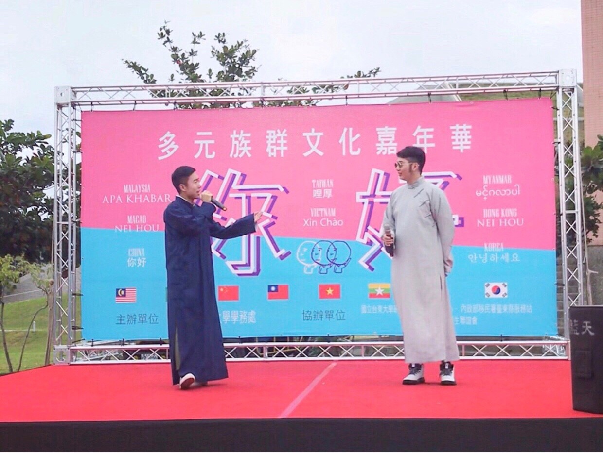 与此同时,我还认识了很多的朋友,有台湾当地的,也有浙江师范大学的其他几名交流生,我们作为陆生,一起参加了学校组织的很多活动,在多元族群文化节上,我们还和世界各地的同学们一起表演,相互了解。正是这些朋友陪伴我度过了在台湾难忘的学习与生活,也是他们陪我一起走在人生这段别样的旅途中。