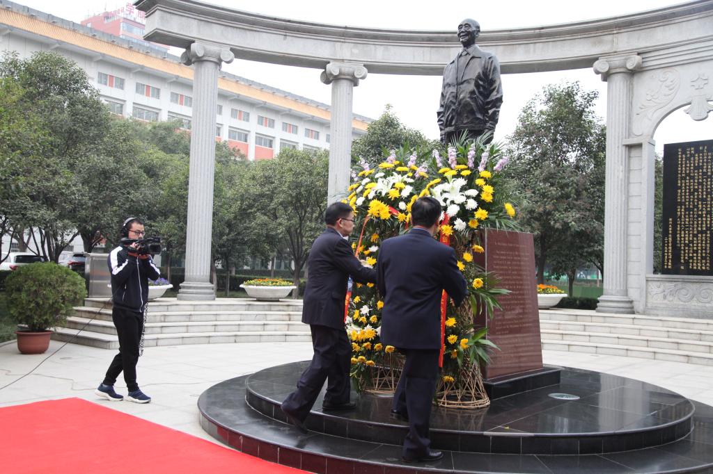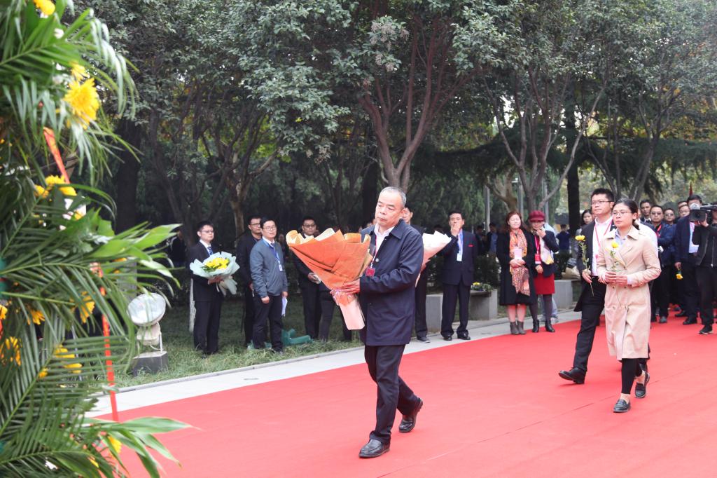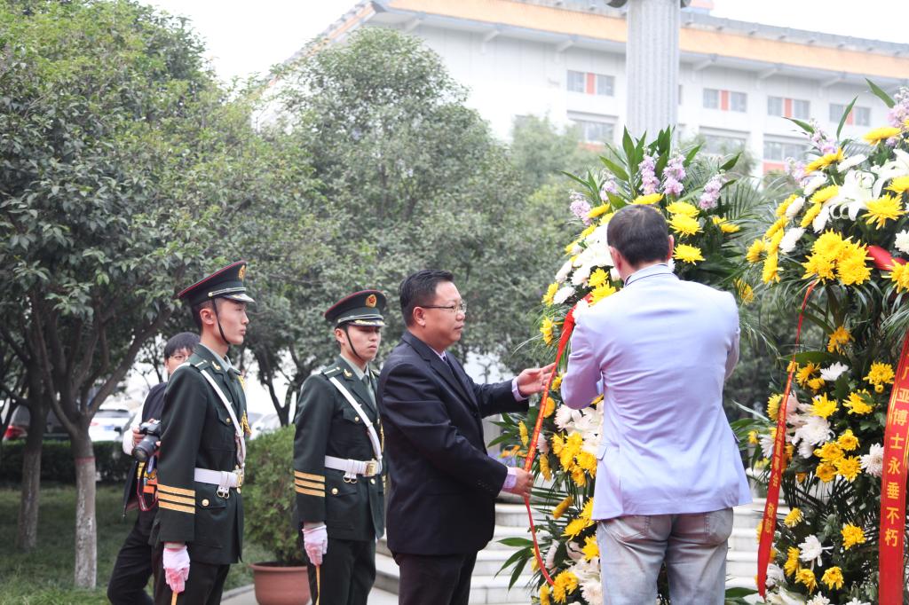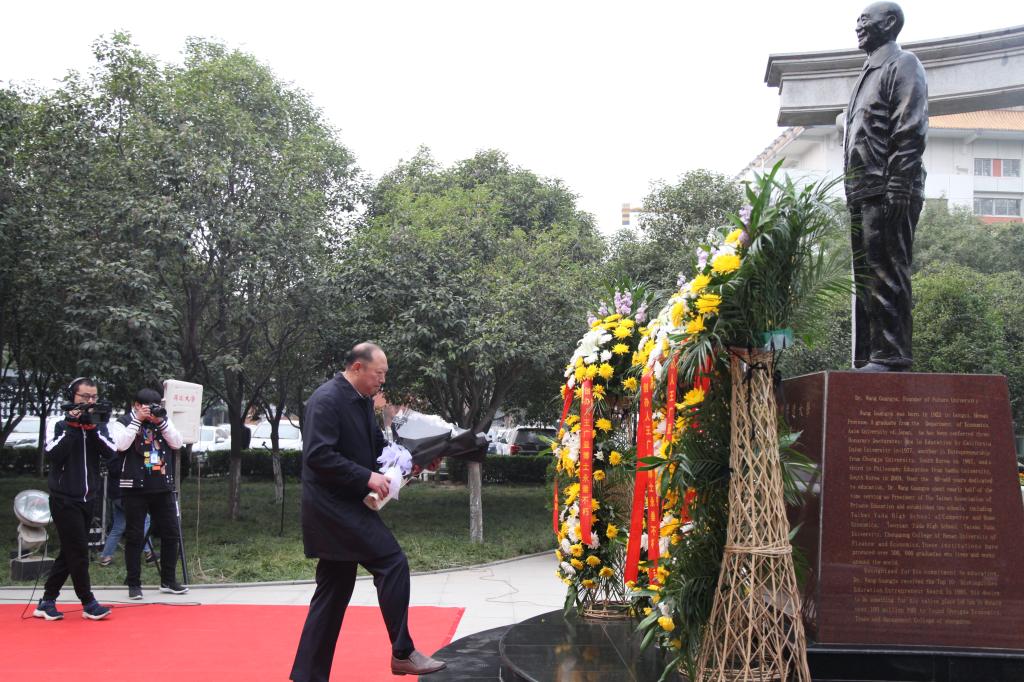 郑州大学西亚斯国际学院李华峰副书记一行向创办人敬献鲜花。