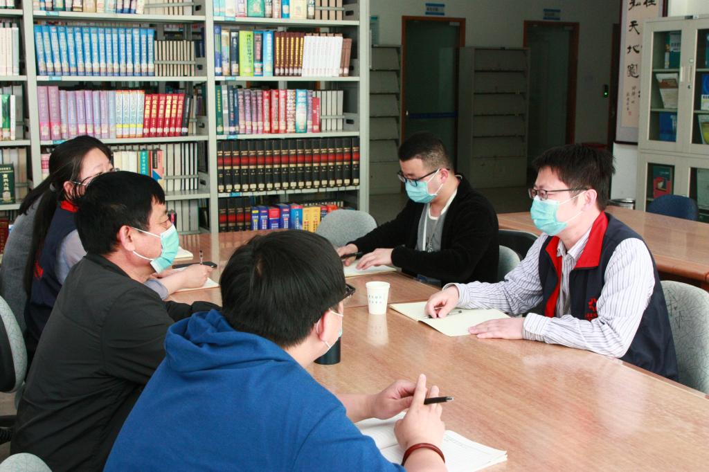 同时,张其武副校长还听取了信息科、流通科和办公室工作汇报,实地查看了图书馆正在进行的图书加工、期刊整理,详细了解近期工作情况。他要求图书馆适时调整工作策略,在宣传教育、人员培训、阅读推广上持续发力,充分发挥“全民阅读示范基地”作用,尽可能降低疫情对图书馆各项工作带来的影响。他指出,图书馆是校园文化建设的重要一环,智慧图书馆是智慧校园的重要组成部分,全校各单位和全校师生都应该关心支持图书馆的建设和发展,对于图书馆面临的问题和困难要加强沟通和交流,理顺关系,帮助解决实际问题,为图书馆更好更快发展奠定坚实基础。
