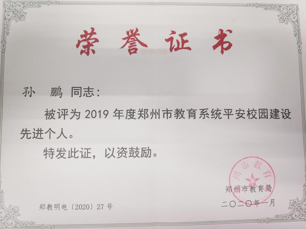近日,我校被郑州市教育局授予“2019年度教育系统平安校园建设先进单位”、我校学务处孙鹏同仁被授予“2019年度教育系统平安校园建设先进个人”荣誉称号,这是学校长期以来高度重视、坚持做好平安建设工作所取得的良好成效,更是全体升达人爱国爱校、奋发有为、锐意进取的精神状态的一次生动彰显。