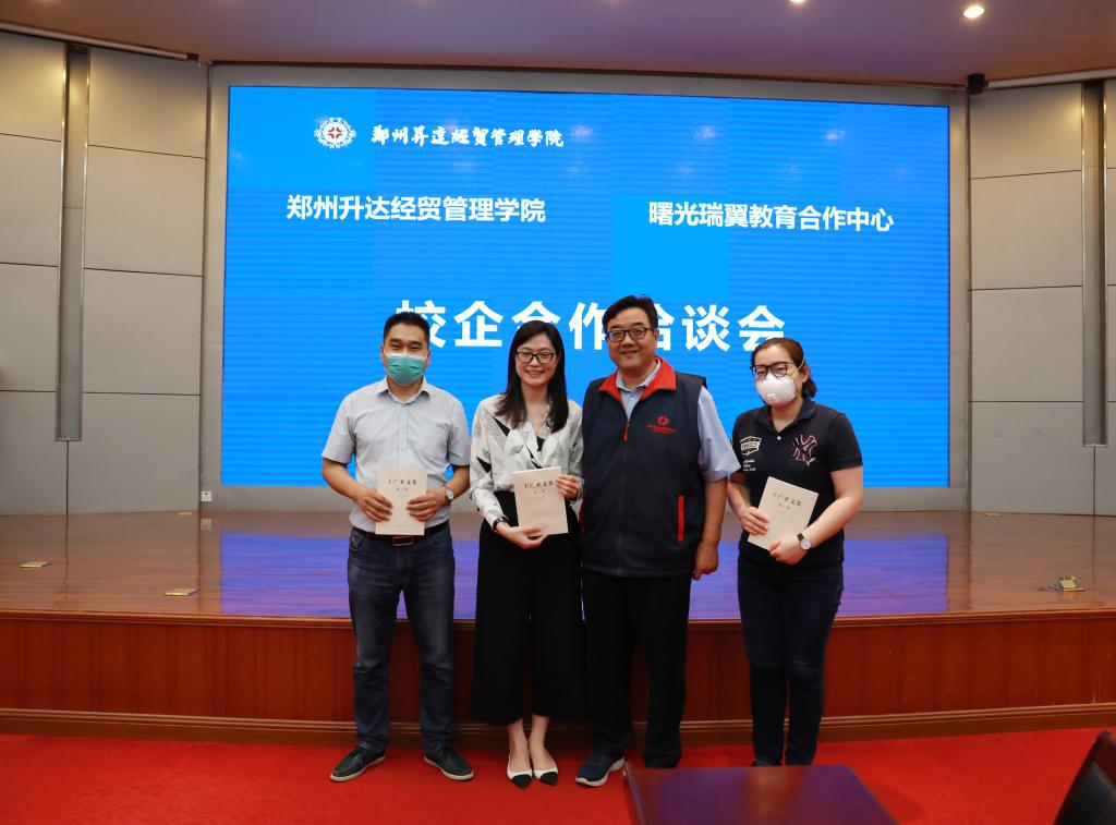 曙光瑞翼教育合作中心副总经理林英女士讲话,她对我校的热情接待表示感谢,对创办人热爱教育、奉献教育的精神表示十分钦佩,对我校取得的卓越成绩表示高度赞赏。随后,她详细介绍了曙光瑞翼教育合作中心与我校开展校企合作的构想及方案,双方拟合作成立升达曙光瑞翼数字经济产业学院,整合政府、企业和行业、高校、研究机构等资源,将产业学院打造成集人才培养、师资培训、科研成果申报及转化、创新创业培养及孵化、实习就业为一体的多功能平台,政产学研深度合作,实现产教融合,服务区域经济发展。