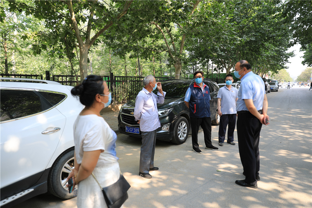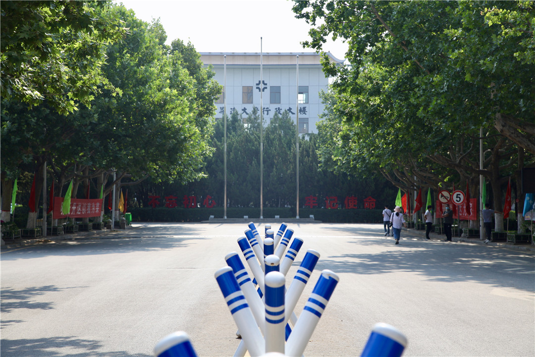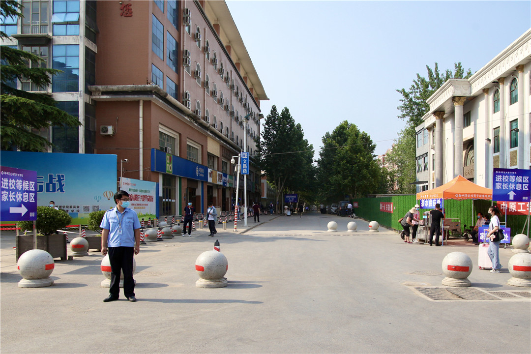 通往学校的升达大道两旁,早几天就挂满了彩旗和标语,在等待着学子们的归来。接待工作中最辛苦的要数学校保卫科的工作人员了,他们早上5点全班人马就上任了,有做教工进校登记的、测体温的,有专门负责接待学生的等等,各司其职有条不紊。校门口还有一先行军是由教职工组成的志愿服务队,在等待着学生们的到来。