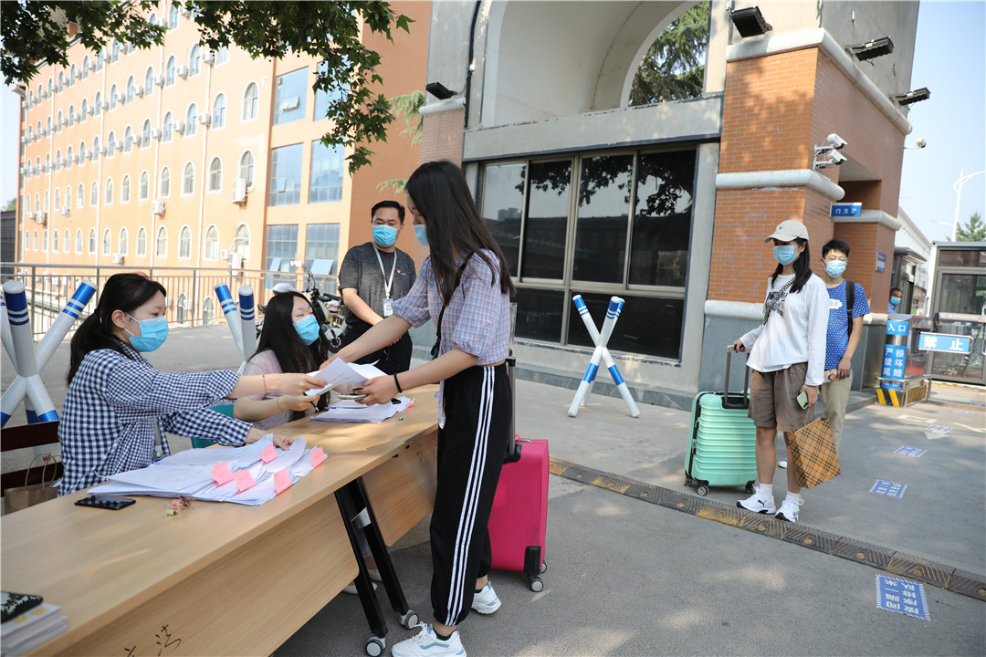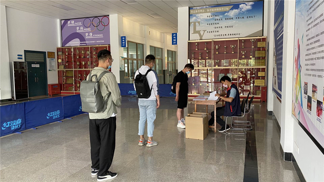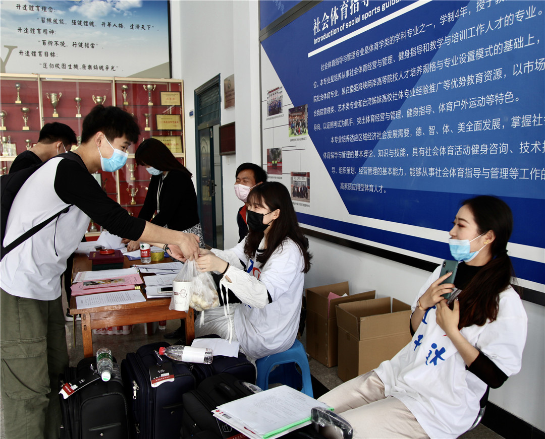 在体育学院的大厅里,体育学院院长张王利、党总支书记韩炎涛、教学秘书张振中、行政秘书高建涛和一帮老师们正忙的不亦乐乎。张王利说,今天计划有57名学生返校,学院将为不能返校的几个省外学生办理好相关手续后邮寄至家中。他还透露了一个喜讯:截止到今天,体育学院已有多名同学接到了考研录取通知,还有几个同学在等面试结果。