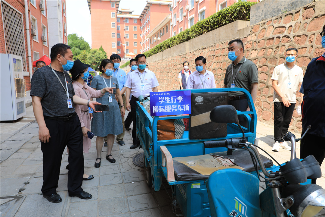 大约6点40分,来自周口的于雪婷和家住郑州的程莹就来到了学校,她们均是文法学院的毕业生。一进学校大门看到在此等候的老师和学院领导,于雪婷就激动地流下了眼泪。她说,一进校门就感到异常亲切,这几个月在家里无时不刻不在想念着学校,想念着和老师同学们见面……今天终于回来了,终于见到了母校和老师们同学们,但又要马上同大家离别,走向社会、奔赴工作岗位,就很想大哭一场。于雪婷这番话,把在场的所有人都说哭了。文法学院党总支书记杨明志一边用手抹泪一边说,恰遇今年这个特殊情况,以这样的形式送走朝夕相处四年的学生,他感觉心里十分愧疚和不舍。一是不能和学生们一起举行毕业典礼,合影留念。再之还有很多嘱咐的话未来得及和学生们话别,还有好多服务学生的工作还没来得及做呢,就这么离别,实在是心有不甘。