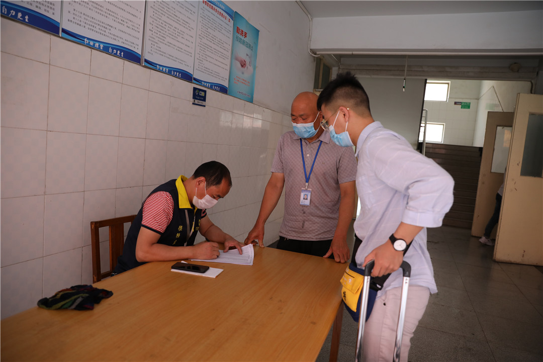(辅导员热情周到 细致耐心地为“回家”学生办理手续)