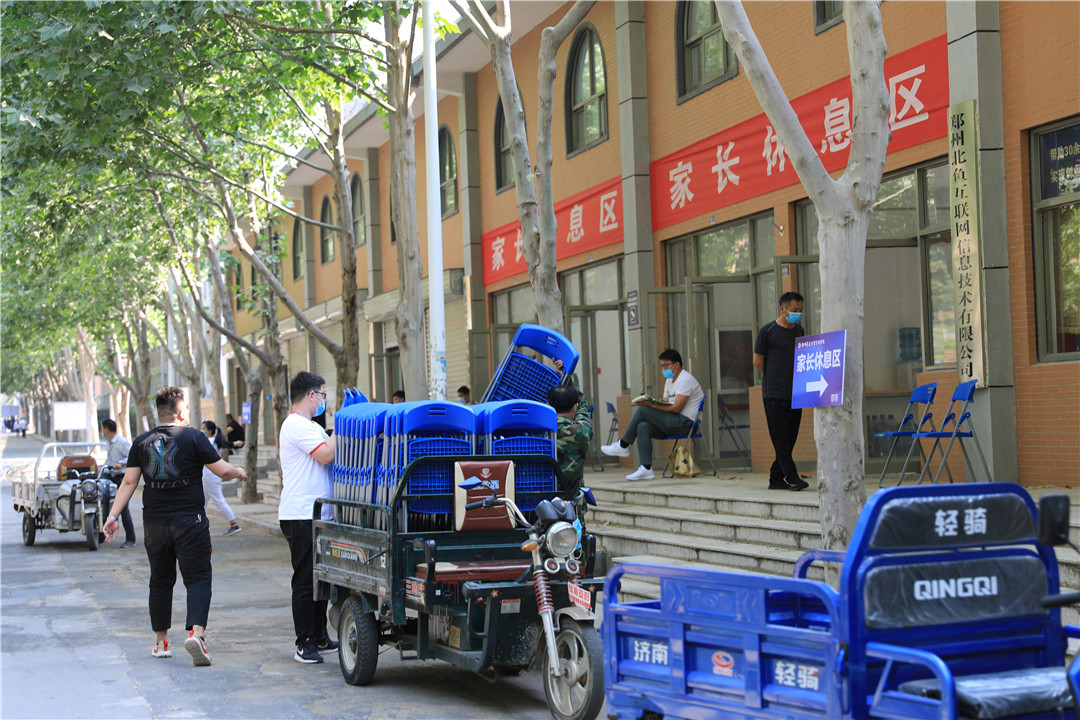 在家长休息区,各类车辆停放整齐有序,学校提前做了卫生打扫、消毒消杀和洒水降温,并为家长们准备了茶水和简餐。家长们高兴地说,升达的服务细致周到,给家长和学生提供了安全和方便,我们都觉得非常满意,升达一定会越办越好。