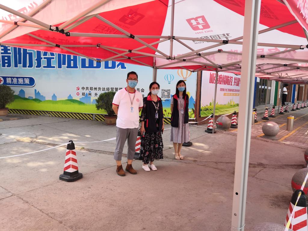 “你好,同学,请在进校通道有序排队。”“你好,我来帮你提箱子。”5月30日开始,我校新学期开学,同学们分批返校,第一批为毕业生。疫情期间,我校提前谋划,校人事处组织近500名教职工担任志愿者,分别负责维持秩序、检查健康码、行李消杀、体温检测、入校引导、行李搬运、家长接待等工作,帮助返校学生快速、安全入校和离校。教职工志愿者统一着白色升达T恤,党员志愿者胸前佩戴党员徽章,构成了校园里一道亮丽的风景。