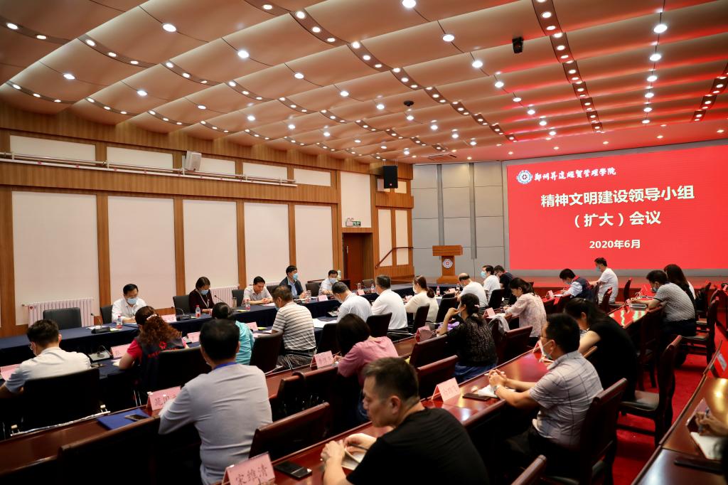 6月16日,我校在国际会议厅召开精神文明建设领导小组(扩大)会议,宣布省委、省政府《关于表彰2017—2019年度河南省文明城市文明村镇文明单位的决定》,研究部署2020年度全校精神文明建设工作,进一步深化我校精神文明创建活动,为学校高质量发展营造良好环境。校长郭爱先、党委书记张德伟、党委副书记兼纪委书记戎庭银、副校长兼工会主席张金安、副校长兼教务长吴益民等校领导出席,各行政部门主管、各学院(部)院长(主任)、各党总支(直属党支部)书记参加会议。会议由郭爱先校长主持。