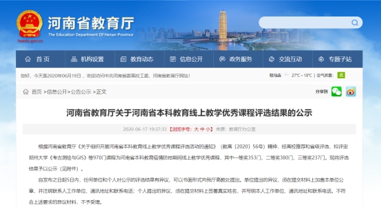 近日,河南省教育厅公布河南省本科教育线上教学优秀课程评选结果,我校基础部3门课程被评为“河南省本科教育线上教学优秀课程”:吴娟娟团队的《综合英语II》获一等奖,张志银团队的《微积分(下)》获二等奖,时文俊团队的《线性代数》获三等奖。