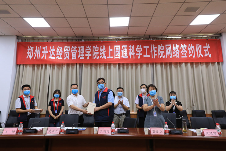 2020年6月29日上午,我校成功举办了线上圆通科学工作院网络签约仪式。教育部学校规划建设发展中心创新发展处副处长王丽萍,圆通科技股份有限公司董事长、中国工作标准研究院院长王民权,中国工作标准研究院副院长白雯丽等嘉宾,与我校领导执行董事王新奇,校长郭爱先,副校长吴益民,校地合作处处长沈定军,创新创业教育学院院长兼圆通科学工作院院长王铮,圆通科学工作院副院长周雪梅共同出席了签约仪式。