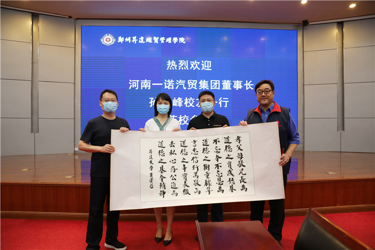 参访期间,校友企业一行参观了学校校园,我校执行董事王新奇向校友一行赠送了纪念品并与他们合影留念。