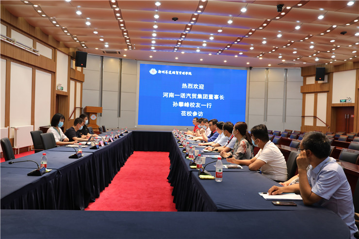 7月7日上午,我校优秀校友,全国校友总会会长,河南一诺汽贸集团董事长孙攀峰携所创办企业高管一诺集团河南道可汽车销售有限公司董事,总经理李亚丽,奇瑞集团星途汽车中区总监刘飞返回母校洽谈校企合作事宜,我校执行董事王新奇、副校长兼工会主席张金安、副校长兼教务长吴益民、副校长兼总务长张其武、董事会秘书兼发展规划处和校地合作处处长沈定军、校长办公室主任朱永恒、党委办公室主任兼党委组织部部长秦旻、招生就业处兼校友办公室处长刘景向、交通学院实验实训中心主任张耀武等参加了会议。会议由刘景向处长主持。