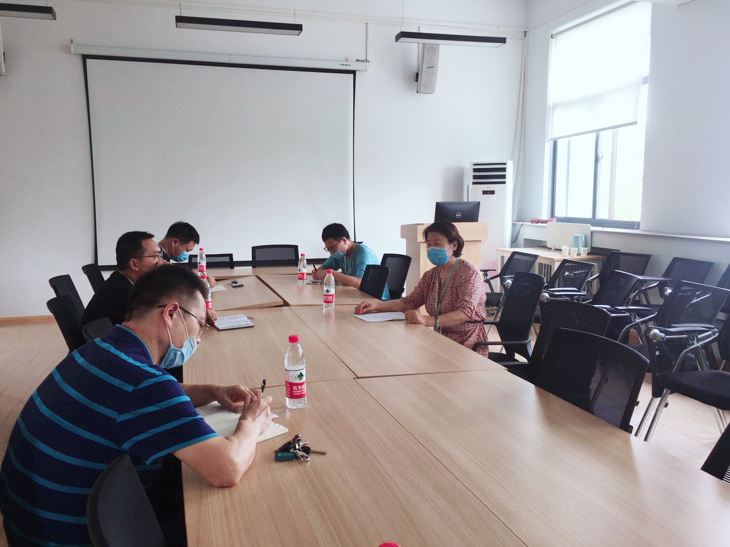7月8日下午,14:30郭爱先校长一行莅临商学院对学生就业情况进行调研督导,参加此次会议的有:党总支书记宋维清同志、副院长白朋飞、行政秘书郭峰、教学秘书马巧丽。