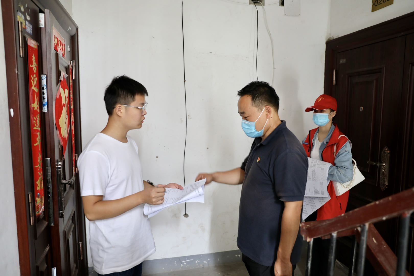阳光港湾小区共有38栋楼95个单元2000多户,除了小高层电梯房,还有六、七层的步梯房。陌生的环境,有限的条件,艰巨的任务,大家并没有被困难吓倒,男生独自行动,女生两人一组,各自确认任务分工后便行动起来,党徽和校徽在胸前熠熠闪光。