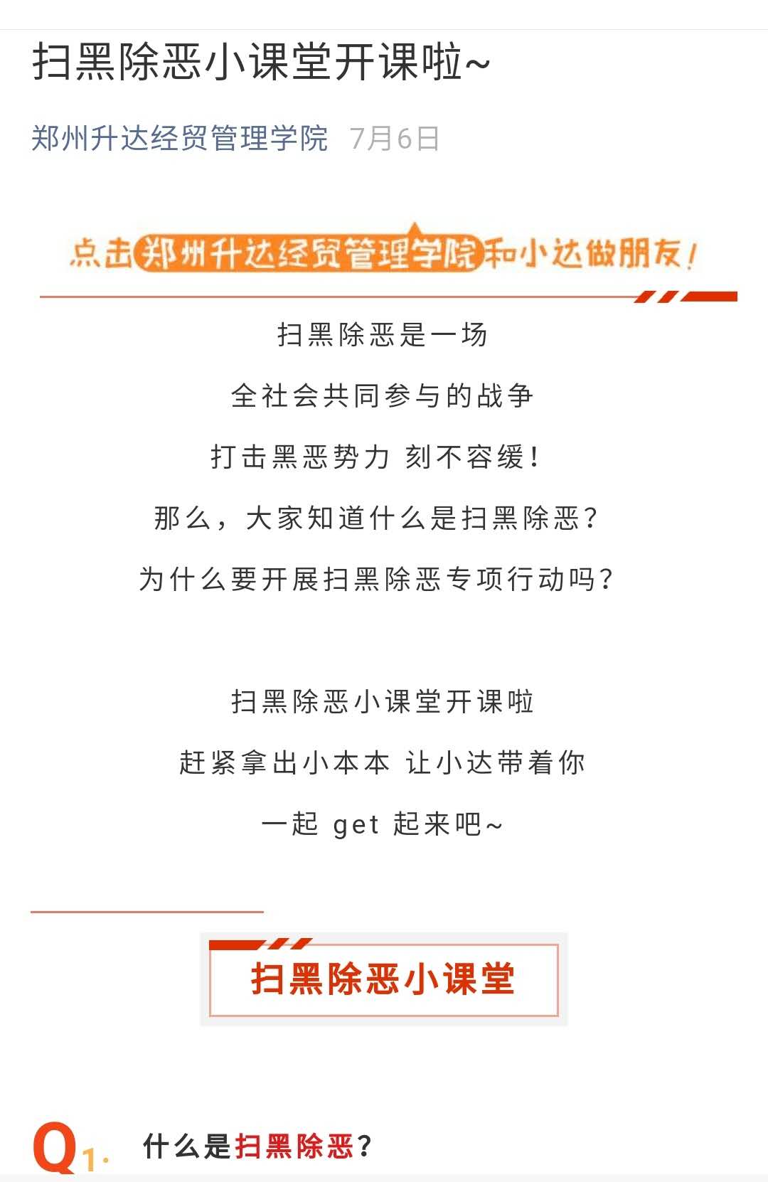 2020年下半年是我省扫黑除恶专项斗争加紧推进、乘胜追击、决战决胜、冲刺收官的重要阶段。根据全国扫黑办和省委的相关安排部署,按照《河南省教育厅转发中共河南省委政法委员会关于再次迅速掀起扫黑除恶宣传新热潮推动专项斗争决战决胜冲刺收官的通知》(教电〔2020〕27号)精神,我校在7月份开展了“扫黑除恶网上集中宣传月”活动(以下简称“扫黑除恶宣传月”活动)。