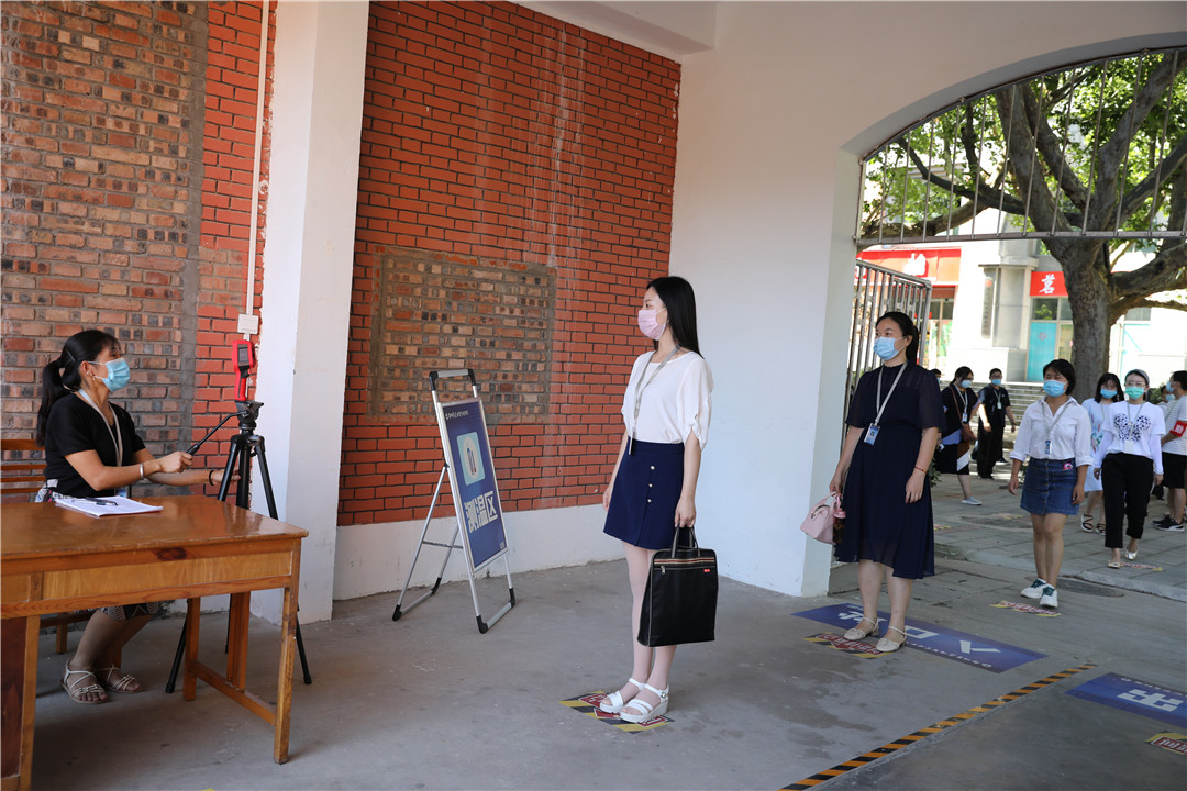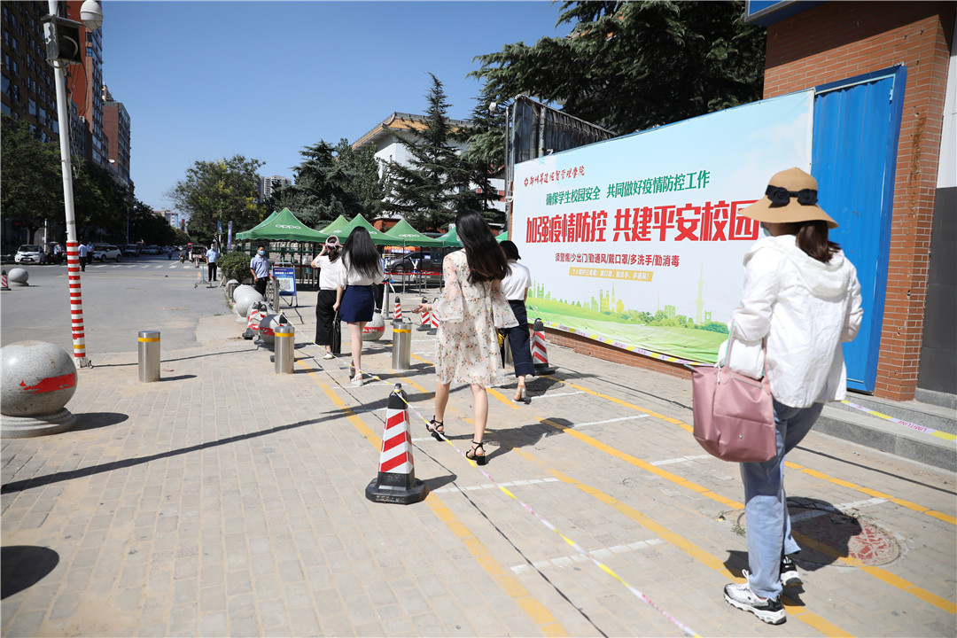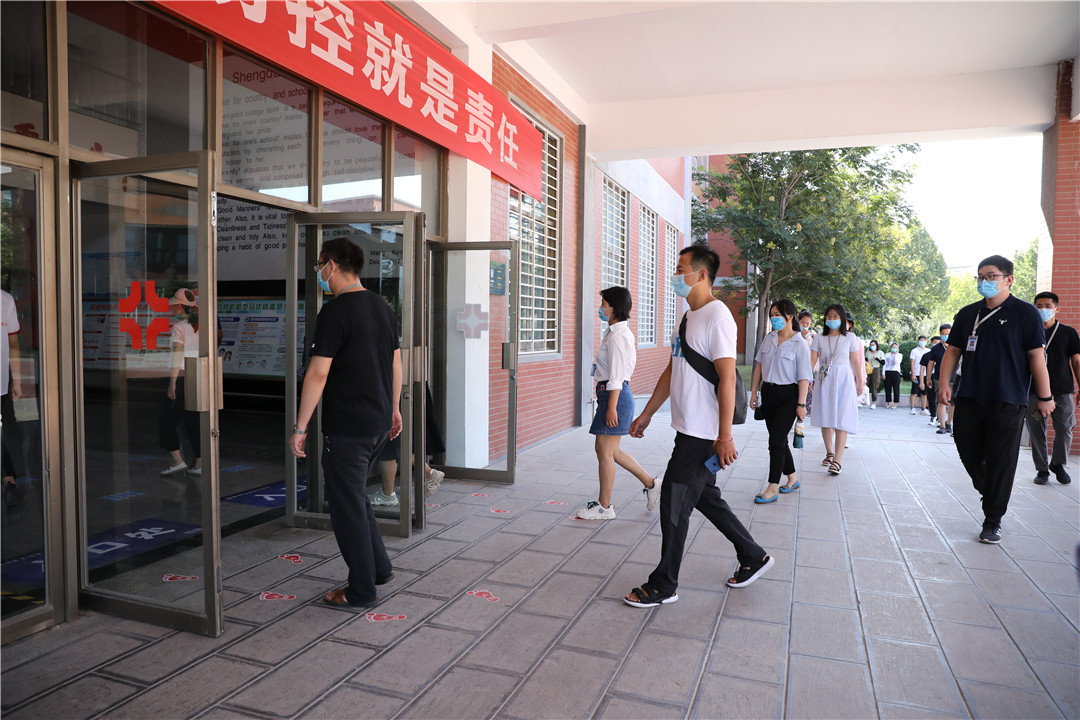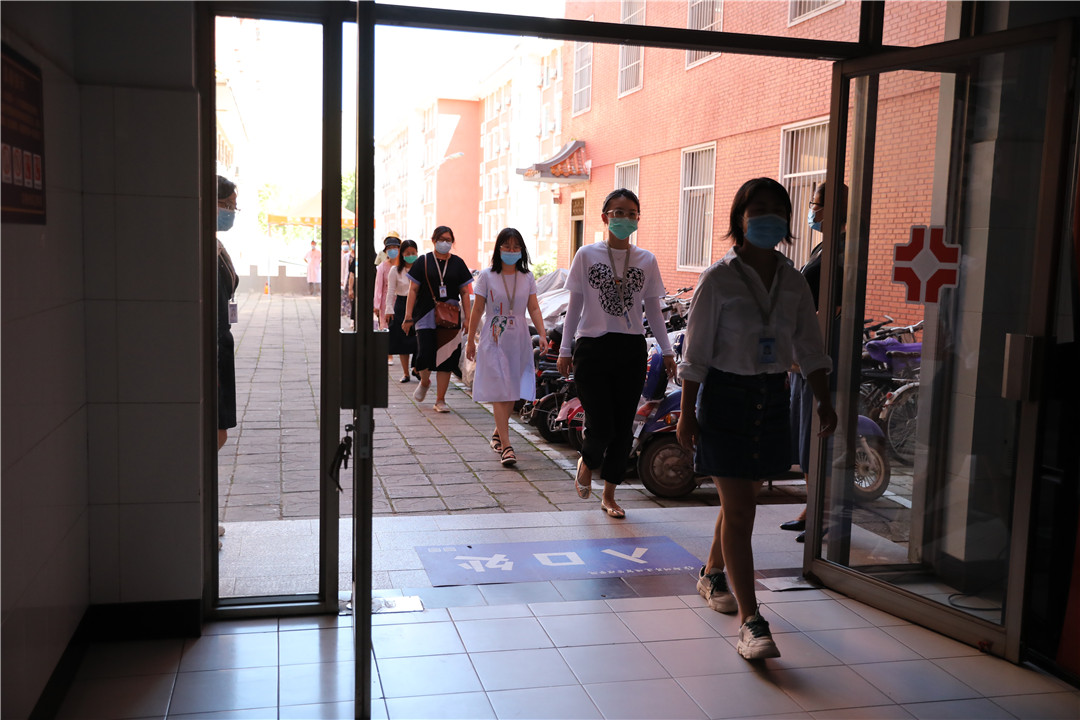 下午两点半,尽管烈日炎炎,大家都精神抖擞,一丝不苟。在校领导作了动员之后,我校返校复学实战演练正式开始。根据方案分工,引导老师、医护人员、秩序管理人员、志愿服务者等各就各位,由教职工扮演学生,分别在学校西大门、学生宿舍楼、学生餐厅、图书馆、教学楼、隔离观察区等处,精心模拟了疫情防控期间学生报到、入住宿舍、餐厅就餐、教室上课、图书馆自习、应急情况处置等场景,大家在实战演练中熟悉流程,总结经验,查漏补缺,改进提升。