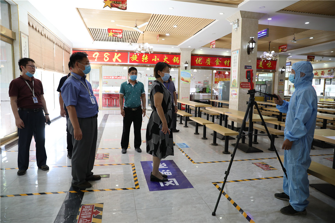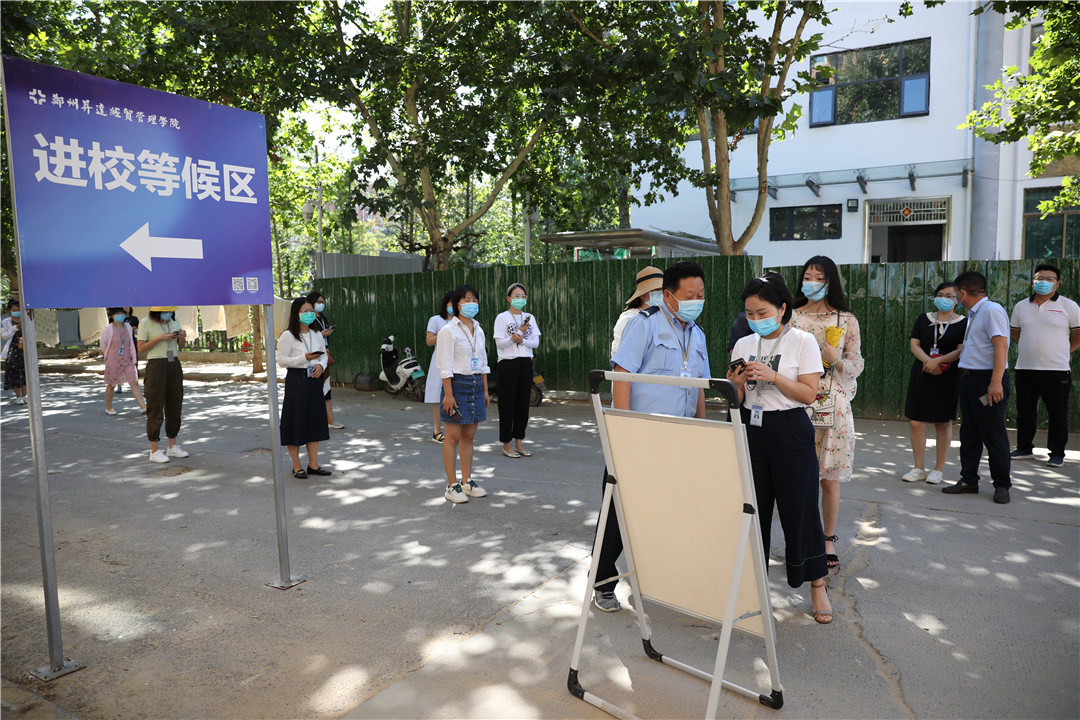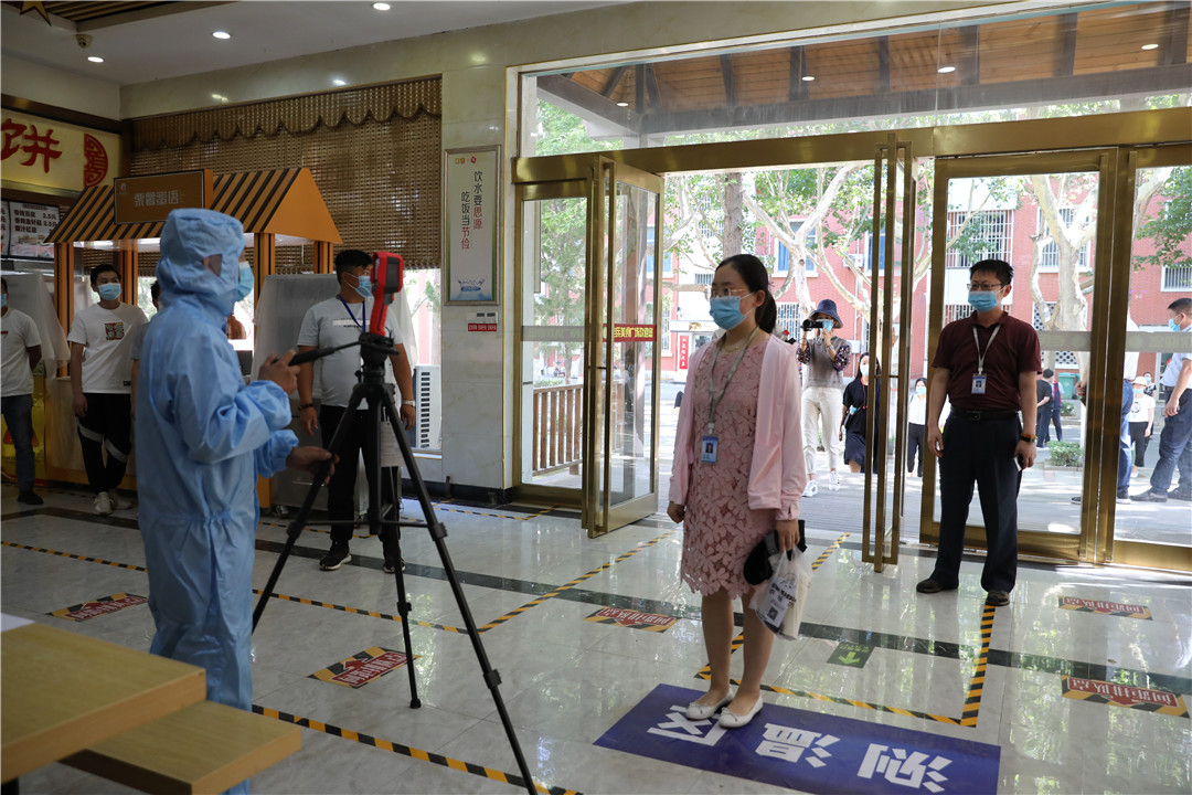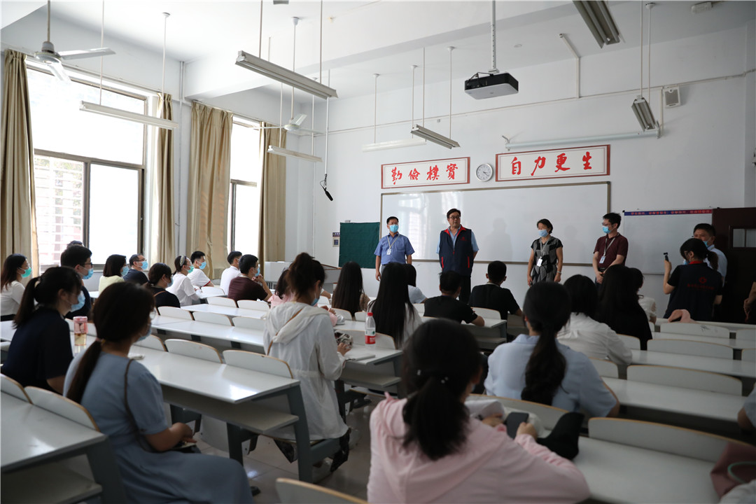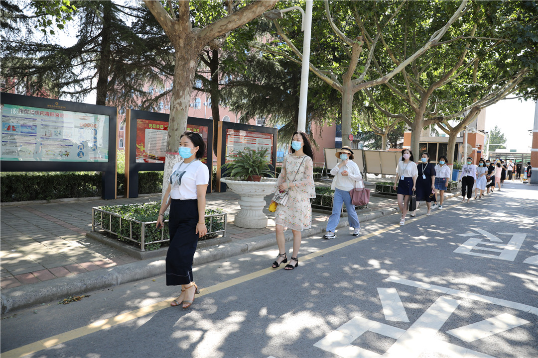 下午两点半,尽管烈日炎炎,大家都精神抖擞,一丝不苟。在校领导作了动员之后,我校返校复学实战演练正式开始。根据方案分工,引导老师、医护人员、秩序管理人员、志愿服务者等各就各位,由教职工扮演学生,分别在学校西大门、学生宿舍楼、学生餐厅、图书馆、教学楼、隔离观察区等处,精心模拟了疫情防控期间学生报到、入住宿舍、餐厅就餐、教室上课、图书馆自习、应急情况处置等场景,大家在实战演练中熟悉流程,总结经验,查漏补缺,改进提升。