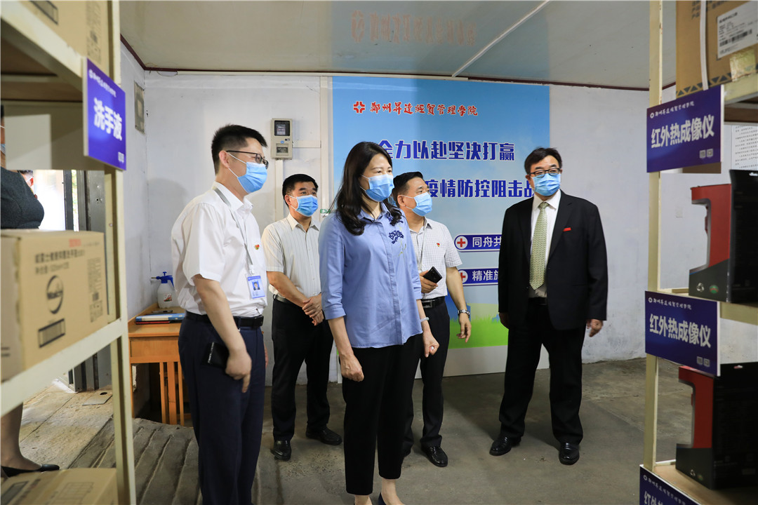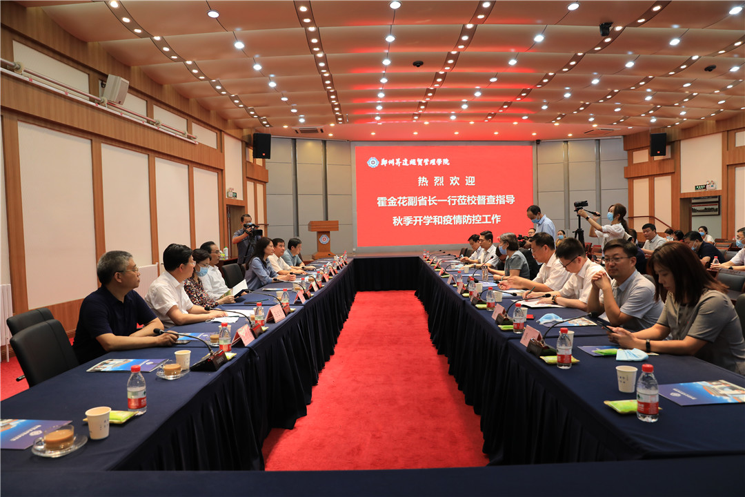9月2日,副省长霍金花到我校调研督导疫情防控和秋季学期开学工作。省政府副秘书长尹洪斌、省教育厅副厅长刁玉华、郑州市副市长孙晓红、省政府办公厅李燕霄处长等一同调研。省教育厅高教处处长张水潮、新郑市市长马宏伟、新郑教育园区管委会主任张顺安等及我校校领导王新奇、郭爱先、张德伟、张金安、吴益民、张其武陪同。
