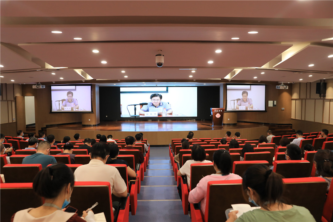 9月4日,我校组织参加全国高校思政课教师“周末理论大讲堂”专题培训,在双创大讲堂集中收听收看了由中央马工程首席专家、“新世纪百千万人才工程国家级人选”、“全国宣传文化系统‘四个一批’人才”、“万人计划”领军人才、清华大学马克思主义学院院长艾四林教授就《求是》2020年第17期发表习近平总书记重要文章《思政课是落实立德树人根本任务的关键课程》所作的专题导学。校党委书记张德伟、副校长兼工会主席张金安、副校长兼教务长吴益民、副校长兼总务长张其武及相关职能部门、各学院院长、各党总支及直属党支部书记、马克思主义学院全体教师、全校辅导员参加学习。