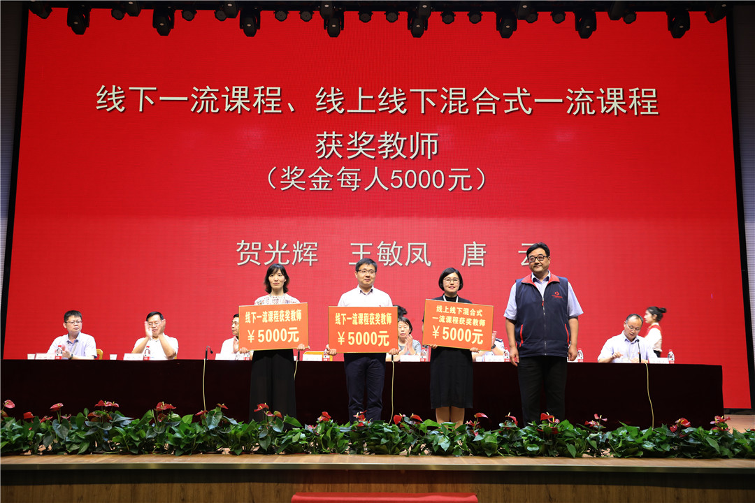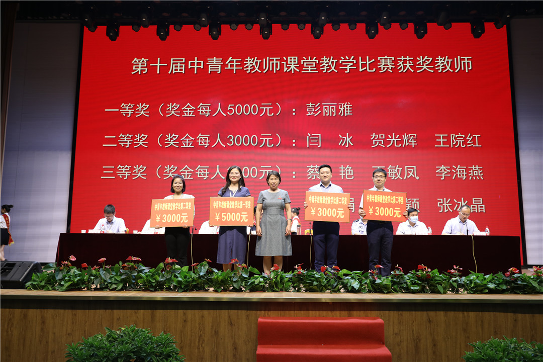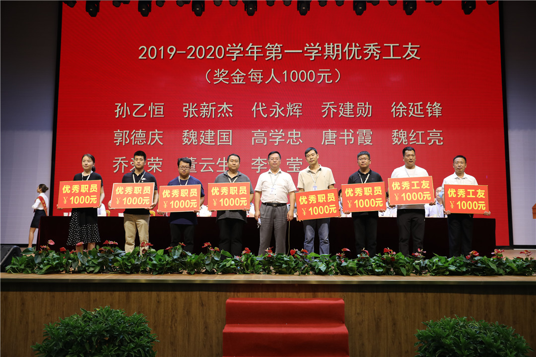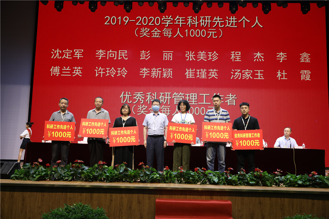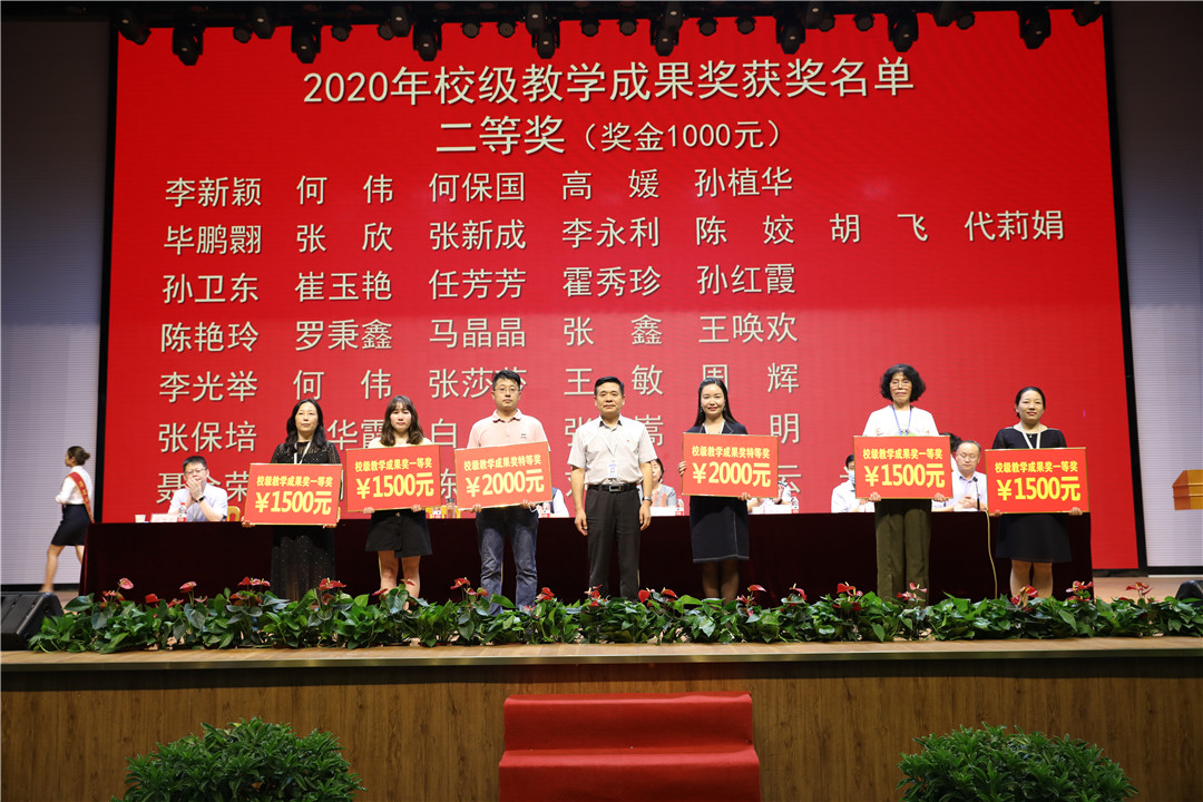 校领导和嘉宾分别为各项获奖教职员工颁发证书、奖金并合影留念。