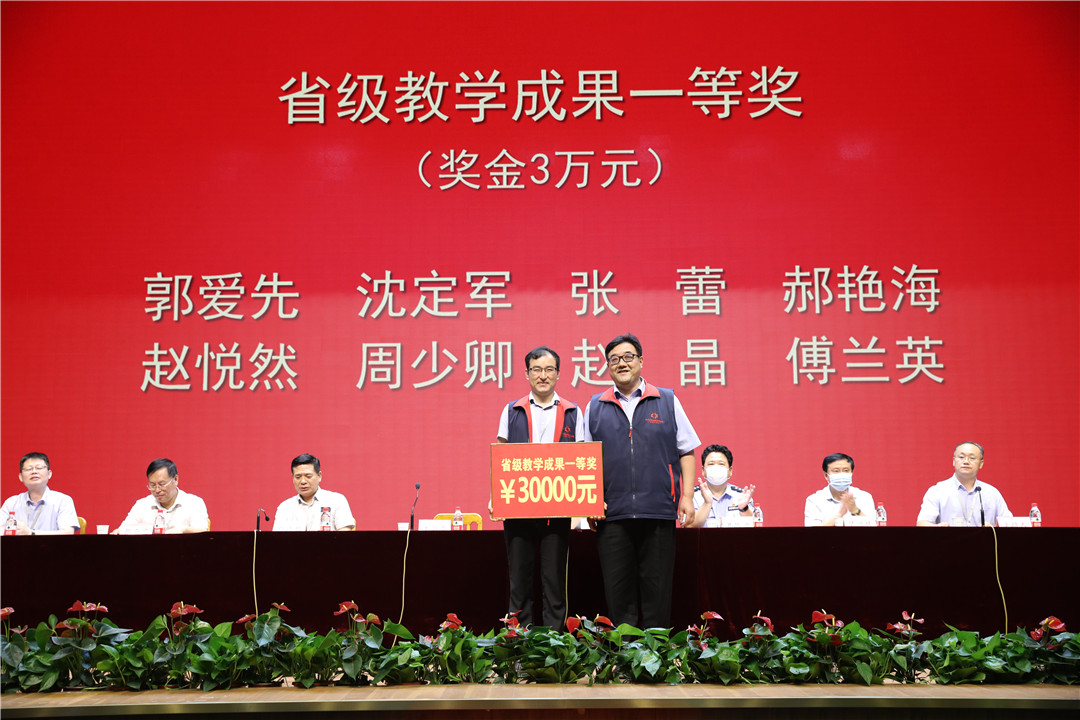 郭爱先校长代表校党政班子,向全校教师致以节日的问候和良好的祝愿。向受到表彰的优秀教师和教育工作者表示热烈的祝贺。向在疫情防控工作和学校事业发展中做出积极贡献的全体教职员工表示崇高的敬意和诚挚的感谢。她说,今年教师节的主题是:立德树人奋进担当,教育脱贫托举希望。今天我们召开教师节庆祝暨表彰大会,就是要分享我校优秀教师立德树人的感人故事,展示他们阳光美丽、爱岗敬业、无私奉献的大美形象,发挥他们的典型示范作用,激发全校教师学习先进、争创一流的积极性。她希望全体教职员工,一要做到育人尽责,做行为世范的“良师”。坚守立德树人初心,牢记为党育人、为国育才使命,增强课程思政意识,发挥课程育人、管理育人、服务育人功能,培养学生的爱国之情和强国之心,做学生梦想的奠基者、信念的浇筑者、灵魂的塑造者,为培养德智体美劳全面发展的社会主义建设者和接班人作出新的更大贡献。二要做到育人有法,做学识渊博的“名师”。全体教师特别是青年教师,要心无旁骛、潜心教学,扎扎实实地练好教学基本功,打造金课,磨砺精品,提升教育教学质量;全体辅导员和管理服务人员要严格遵守职业道德规范,切实履行岗位职责,全面提升服务学生能力;受到表彰的优秀教师要戒骄戒躁,更上一层楼,做博学多才的“名师”,为学校高质量发展做出更大贡献。三要做到育人以爱,做学生爱戴的“恩师”。本学期疫情形势依然严峻,3万多名学生要在严格疫情防控措施下集中在校园学习生活,更需要我们用母亲之心关爱学生,用真心、真爱、真情对待学生,用爱心、关心、耐心服务学生,滋润学生的心田,了解他们的诉求,疏导他们的心理,指导他们的学习,给他们力所能及的服务与帮助,做学生的贴心人,做大爱的撒播者,努力成为学生敬仰爱戴的良师益友。